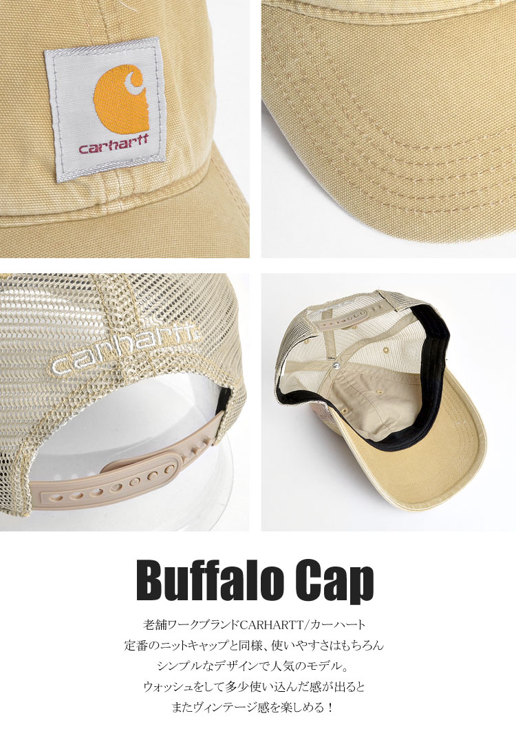 キャップ carhartt カーハート メッシュキャップ メッシュ buffalo バッファロー ウォッシュ キャンバス レディース メンズ 帽子 ワーク スポーツ アウトドア スナップバック ヴィンテージ 綿 黒 カーキ ベージュ 日よけ 熱中症 紫外線 100286 キャップ 帽子 あす楽対応
