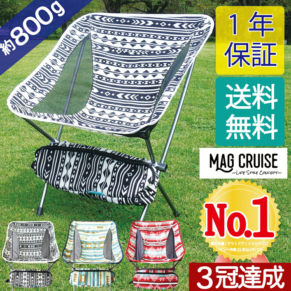 商品名Mag Cruise 軽量アウトドアチェア サイズバッグ 44cmx12cmx8cm 重量 830g(椅子本体) 約100g(収納バッグ) カラーホワイト/ブラック, ブルー/ナバホ, レッド/ナバホ 写真撮影時の環境により実際の色と若干異なる場合がございます。